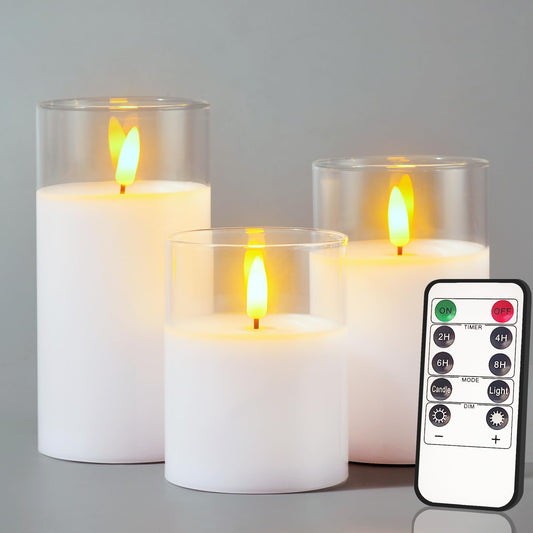 Glass Battery Operated LED Flameless Candles with Remote and Timer, Real Wax Candles Warm Color Flickering Light for Festival Wedding Home Party Decor(Pack of 3)-Gold